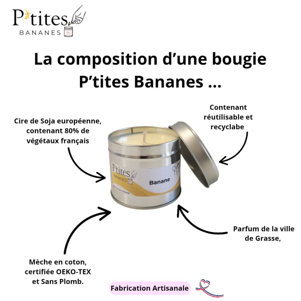 Un nom peu commun pour une marque de bougie, mais qui pour nous était une véritable évidence, P’tites Bananes c’est avant tous une histoire familiale, des premières bougies fabriquées pour le plaisir dans la cuisine en mode « DIY », nous voila maintenant dans un atelier aménagé pour vous partager nos créations.